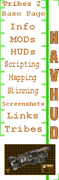 | Tribes 2 Links: | Weapons | Armor | Vehicals | Packs, Deployables | Official Map Editor Guide | Scripting |